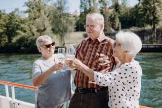 Degustiere auf der Fahrt von Schaffhausen nach Stein am Rhein die köstlichen Tropfen aus dem Schaffhauser Blauburgunderland an Bord der URh und geniesse dazu eine der schönsten Strom-Schifffahrten Europas.