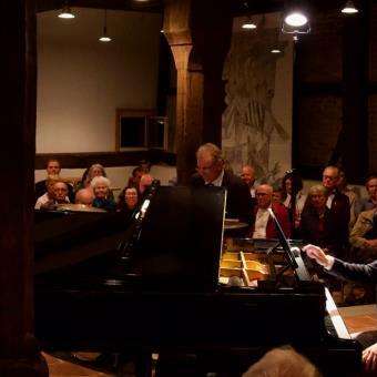 Das Piano Jazz Festival Stein am Rhein präsentiert 4 Konzerte, an denen Pianisten an zwei Flügeln zusammen mit einem Schlagzeuger in verschiedenen Formationen zusammen spielen.