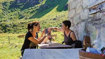 Im Alpbeizli lässt es sich herrlich verweilen, es gibt Feines von z Alp samt Erfrischungen für durstige Wanderer und Naturgeniesser.