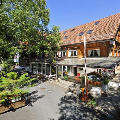 An warmen Tagen sorgt der Pool auf dem Gelände für eine willkommene Abkühlung. Kulinarisch wirst du direkt vor Ort im Restaurant «Zur alten Eiche» mit saisonalen Spezialitäten verwöhnt. Für Kinder steht ein vielseitiger Spielplatz mit Kletterturm und Spielgeräten bereit. In der Umgebung laden weitere Restaurants, Spielplätze und Sportanlagen zum Entdecken ein.