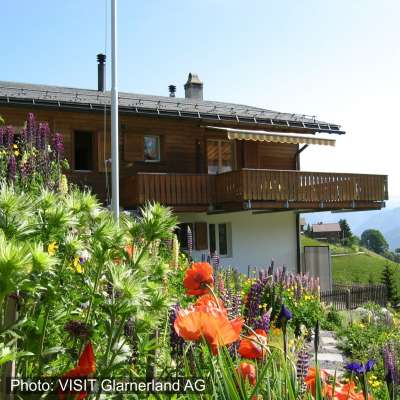 Die gemütliche und sehr gut eingerichtete Ferienwohnung im Chalet Abendruh befindet sich etwa 1,5 km abseits des Dorfkerns Braunwald im separaten „Dörfchen“ Schwettiberg. Gleich nebenan befindet sich Ihre Einkaufsmöglichkeit, das „Schwettiberg-Lädeli“.