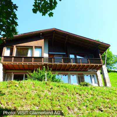 Die Ferienwohnung verfügt über eine gemütliche-praktische Einrichtung sowie eine grosse Terrasse mit Blick auf Ortstock, Hausstock und Kärpf. Durch die grossen Fensterfronten ist die Wohnung sehr hell und sonnig.