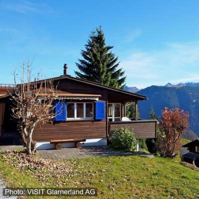 Das Chalet verfügt über einen grossen Balkon, von dem man die traumhafte Aussicht auf die Glarner Bergwelt geniessen kann. Zudem besitzt das Chalet einen grossen Sitzplatz.