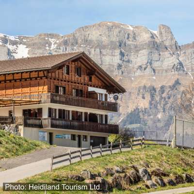 Das Haus liegt unterhalb des Ferienortes Flumserberg in St. Galleroberland an einer ruhigen privaten Strasse mit Blick auf die Churfirstenkette.
