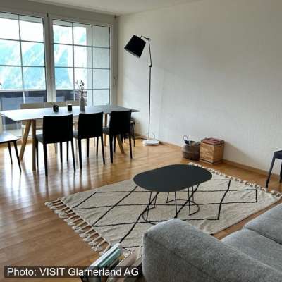 • Balkon mit Blick auf die grandiose Glarner Bergwelt • Waschmaschine, Tumbler im Keller für das ganze Haus • Bodenheizung in der ganzen Wohnung