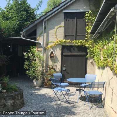 In Romanshorn erwartet Sie in einem ruhigen Quartier, in einem von wildem Wein umrankten Nebengebäude, eine 2-Zimmer Gästewohnung. Bahnhof, Hafen, Supermarkt so wie die Seepromenade sind in ca. 5 Gehminuten zu erreichen.