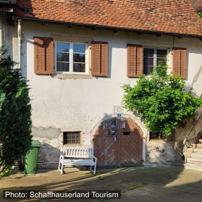 Über dem rundbogigen Tor zu ebener Erde auf einer in die Mauer eingelassenen Sandsteinplatte sind die ein Mühlrad umgebenden Initialen «HS-EM» (Johann=Hans Seiler-Elisabeth Müller) samt Datum «1716» eingemeisselt (Nebenhaus Ökonomie).