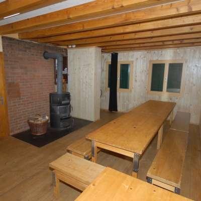 Die Klushütte liegt nahe am Wald auf einer Anhöhe bei Schaffhausen.