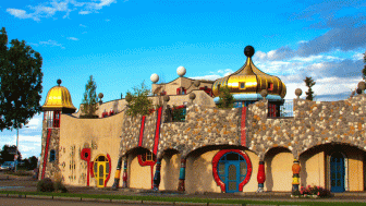 Vergoldete Zwiebeltürme, leuchtende Farben, geschwungene Linien, ungleiche Fenster, unebene Böden, bunte Keramiksäulen, schattige Wandelgänge. Ein Märchenschloss mitten im Industriegebiet. Ausflugsziel, Museum, Galerie, Shop und Eventlokal unter einem Dach, auf dem vier leuchtende Goldkuppeln thronen. Die Markthalle Altenrhein ist ein Architekturprojekt nach Idee und Konzept des österreichischen Künstlers Friedensreich Hundertwasser. Das Einzige, das in der ganzen Schweiz gebaut wurde. Sie liegt in unmittelbarer Nähe zum Bodensee, der Stadt St. Gallen, dem Appenzellerland und direkt am internationalen Bodensee-Radweg.