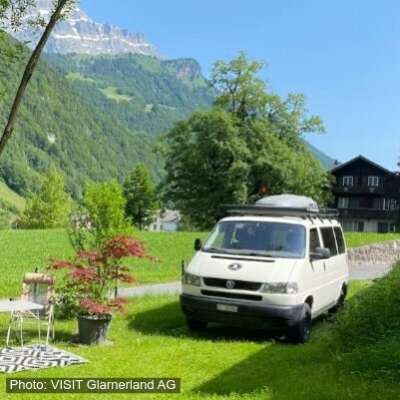 Herzlich Willkommen im Garten der WG Hopstache, beim Diesbachfall. Wir sind eine bunte Familien-WG/Craft Beer Brauer mit einem grossen, zauberhaften Garten mit Blick auf den Diesbachfall und die Berge. Wir haben eine Feuerstelle und einen Gasgrill, viel Platz zum geniessen, eine Slackline, div. Gartenspiele und vieles mehr. Zudem dürft ihr gerne unser Gäste-WC im Hauseingang nutzen. Im Garten steht eine Aussendusche um sich zu erfrischen. Vom Camp aus kann man vieles zu Fuss erreichen wie z.B. den Diesbachfall, viele Wanderwege, Familienfeuerstellen, den Zirkus Mugg mit seinem wunderschönen Zirkusbeizli, den öffentlichen Verkehr etc.