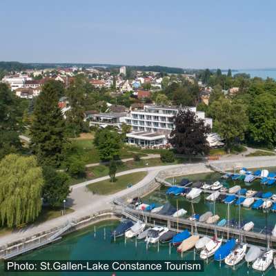 Mit ihren Erd- und Blautönen erinnern die hellen, geschmackvoll eingerichteten Zimmer des Park-Hotels Inseli an See und Strand. Das passt. Das Hotel liegt direkt am Bodensee, eingebettet in einen weitläufigen malerischen Park. Erholen können sich Gäste hier nicht nur dank der Ruhe und Weite des Wassers, sondern auch im Kosmetik- & Massagestudio oder in der kleinen aber feinen «Wellness-Oase» mit Sauna, Whirlpool und Fitness Raum. Kulinarisch verwöhnen das Panoramarestaurant und die idyllische Seeterrasse, aber auch die Porto-Bar. Das Angebot an regionalen Spezialitäten umfasst ständig fangfrischen Bodenseefisch, vegetarische und vegane Gerichte sowie täglich wechselnde Menüs. Für Anlässe wie Seminare, Bankette, Hochzeiten, Familien- und Vereinsfeiern erfreuen helle Räumlichkeiten mit Seeblick oder die Möglichkeit, bei schönem Wetter draussen, direkt am Wasser zu feiern. Am Bodenseeufer und im Park lassen sich Spaziergänge, Badefreuden, Touren auf zwei Rädern und Skaten geniessen.