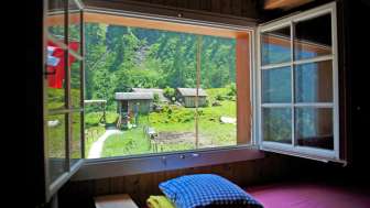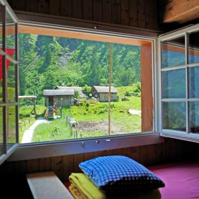 Verwöhnt werden Sie auch mit typischen Älplergerichten und zum Übernachten stehen in den Alphütten Massenlager bereit: In drei Alphütten, im Unterstafel (25 Plätze), in der Panoramahütte (36 Plätze) und im Oberstafel (14 Plätze). Gasherd, Holzherd und Grill (inkl. Geschirr) sowie Dusche und WC sind in allen drei Hütten vorhanden.