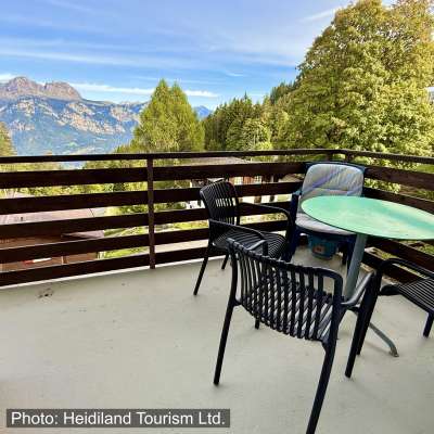 Zimmer mit eigenem Balkon und herrlicher Aussicht auf die Churfirsten. Das Zimmer bietet Schlafgelegenheit für 2 Personen im Doppelbett und verfügt über einen direkten Zugang zu eigener Dusche/WC.
