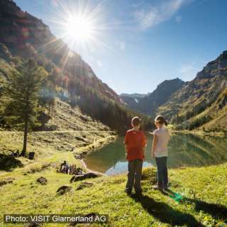 Der Weg führt von der Bergstation Habergschwänd via Talalp- und Spaneggsee zum Fronalppass und verläuft teilweise auf dem offiziellen Sardona-Welterbe-Weg Nr. 73. So erfährt man, wie Gletscher Felsen schleifen, wie Moränen entstehen, wie die lokalen Gesteine Klimageschichten schreiben, und man liest Interessantes zu Höhlen, dem Talalpsee und der Hellloch-Doline.