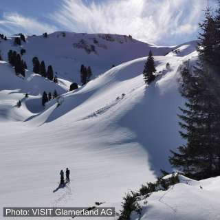 | Anreise | Wer mit dem PW anreist, braucht eine gute Winterausrüstung auf der steilen, engen Oberseestrasse. Meistens kann bis zum Berghotel Obersee gefahren werden, manchmal bis hinten am See zur Stafelbrücke. |