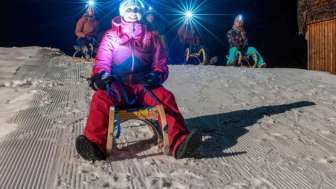 Ein feines Braunwalder Alpchäs-Fondue oder eine Racletteschnitte im Bergrestaurant Chämistube ist die Einstimmung auf ein abenteuerliches Nachtschlittelerlebnis. Geniesse die heimelige Atmosphäre oder sause schon vor dem Essen ein- bis zweimal die beleuchtete Schlittelpiste hinunter.