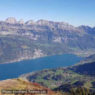 Der Aussichtspunkt Gross Güslen im Wandergebiet Flumserberg bietet einen Panoramablick auf den Walensee und die Churfirsten. Er ist Teil der 7-Gipfel-Tour und auch über die Seebenalp erreichbar.