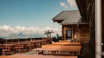 Die Aussichtsterrasse auf 2000 m ü. M. bietet einen herrlichen Ausblick auf die Liechtensteiner Bergwelt.