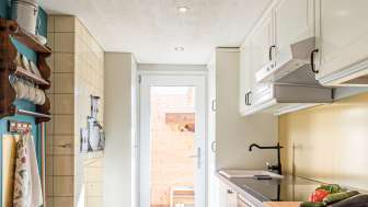 Wir haben die Wohnung mit einem restaurierten Küchenmöbel von unserem Wohnbereich abgetrennt. Das gute Möbelstück haben wir umfunktioniert, damit man durch das Kästli kommunizieren kann (beide Seiten können öffnen) und wir euch über die Durchreiche das Frühstück (auf Bestellung) bereitstellen können. Es ist uns wichtig, dass ihr als Gäste die uneingeschränkte Privatsphäre habt und trotzdem ganz unkompliziert mit uns in Kontakt treten könnt.