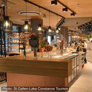 In der Handmade Chocolaterie kann auch mitverfolgt werden, wie die verschiedenen Schokospezialitäten entstehen. Angeboten werden auch frische Frühstücksgerichte, nahrhafte Znüni-Verpflegungen und feine Mittagsgerichte. Die Lounges oder auch die einladende Dachterrasse mit fantastischem Weitblick laden zum Schlemmen und Verweilen ein.