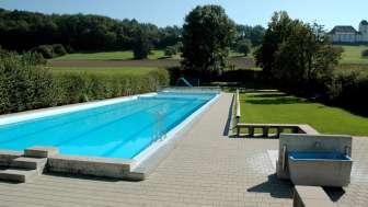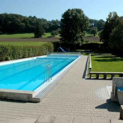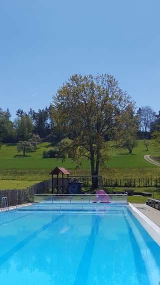Die familiäre Badi liegt idyllisch am Dorfrand direkt unterhalb der Kirche St. Othmar.
