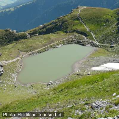 Sie stehen vor dem grünlich schimmernden Baschalvasee. Auch hier finden Sie wieder viel Kraft, allerdings herrschen nicht nur aufbauende Energien vor. Energetisch gesehen erreichen die Werte am Baschalvasee diejenigen eines Kultplatzes. Ob er als solcher genutzt wurde, ist nicht bekannt. Im Sommer weiden hier Kühe und erinnern, im flachen Wasser stehend, an uralte Gemälde. Es ist ein Bild des Friedens, das sich Ihnen hier in dieser Bergidylle präsentiert.