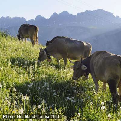 Einzigartig ist ihr Geschmack, den das duftende Bergheu in den Wintermonaten und die saftigen Kräuter im Frühjahr in die Milchprodukte bringen. Unsere Bergheimet und Maiensässe liegen an der Bergflanke am Melser Hinterberg von 800-1200m Höhe. In diesem Lebensraum ist auch das Naturschutzgebiet Chapfensee eingebettet.