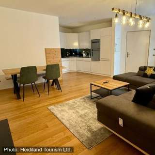 Die 2.5-Zimmerwohnung ist modern und stilvoll eingerichtet. Die Ferienwohnung bietet Platz für 4 Personen und kann dank eines hochwertigen Schlafsofas auf bis zu 6 Personen erweitert werden.