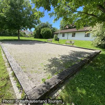Freie Bocciafläche auf der Vrenesliswiese hinter dem Rathaus in Jestetten.