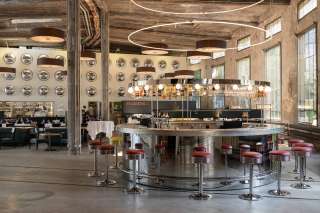Die Vergangenheit des Industriebaus lebt in den Schienen, den fahrbaren Sitzbänken und der offenen Raumgestaltung weiter. In der Brasserie Lok wird der Esprit de Paris nach St.Gallen gebracht. Weltbekannte Gerichte wie das Entrecôte Café de Paris, der knackig-frische Salade Niçoise, die wunderbar schmackhafte Bouillabaisse und bretonische Austern regen die kulinarische Fantasie an. Und das Sortiment an feinsten Bordeauxweinen rundet jedes Gericht perfekt ab. Im Salon und im Bistro werden diese französischen Köstlichkeiten und edlen Tropfen serviert. Die Bar lädt den ganzen Tag zum Verweilen ein – mit dem Morgenkaffee oder einem Glas Champagner. Dabei kann auch das imposante John Armleder Kunstwerk bewundert werden.