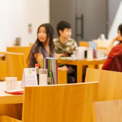 Das Café im Kunstmuseum bietet eine feine Auswahl an Speisen, darunter leckere Reissalate und hochwertiges Sushi.