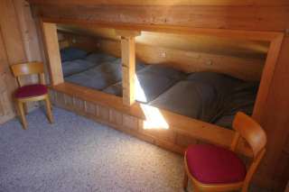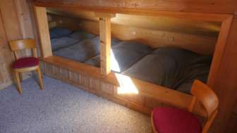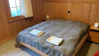 Im OG befinden sich ein Badezimmer mit Dusche, WC und Doppel-Lavabo, ein Zimmer mit Doppelbett und ein zweites Zimmer mit sechs Betten (Lager).