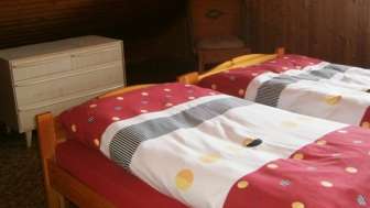 Bestehend aus Einbauküche, Essecke, Wohnraum, 1 Doppelschlafzimmer, 2 abgeschrägte Schlafnischen mit je 1 resp. 2 Betten (Total 5 Betten) und Dusche/WC.