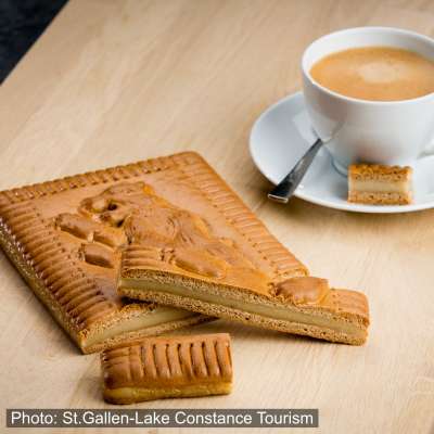 Zum genussvollen Angebot gehören die berühmten St. Galler Biber, feinste Pralinen und die verführerischen Schokoladen-Spezialitäten wie die St. Galler Spitzen, die Klostersiegel oder die St. Galler Pflastersteine. Auch mit vorzüglichen Torten und Pâtisserie werden die Kunden verwöhnt.