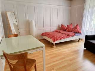 Die einfache und praktische Ferienwohnung im Erdgeschoss liegt zentral in Glarus und eignet sich ideal für zwei Personen. Sie bietet eine funktionale Einrichtung mit Kochnische, Wohnbereich und Schlafmöglichkeiten (Doppelbett 120 x 200 sowie Schlafsofa).