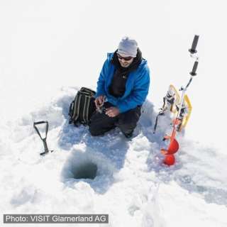 Beim Eisfischen werden in der Regel Ruten mit Längen von 60 bis 90 cm verwendet. Damit kann man näher am Eisloch stehen und den Fisch besser kontrollieren. Nebst Geduld braucht es zum Eisfischen warme Kleider und wasserdichte Schuhe.
