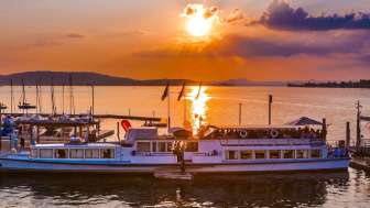 Ehemals Bodenseekursschiff «MS Kreuzlingen» – heute stilvolles Event-, Gastroschiff und Fondue-Chalet in einem. Das «erMarina» in Ermatingen verwöhnt Gäste mit kreativer und auserlesener Küche, malerischen Sonnenuntergängen und wunderbaren Ausfahrten auf dem Untersee.