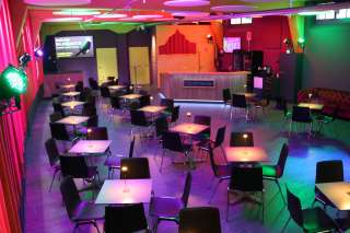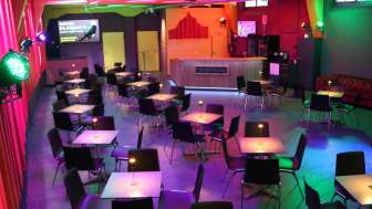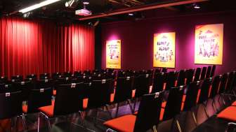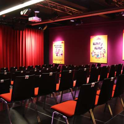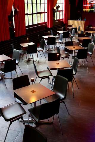 Der Theatersaal bietet 117 Sitzplätze, das gemütliche Bistro rund 60 – ideal für einen unterhaltsamen Abend oder auch für Workshops, Privatfeiern und Firmenevents.