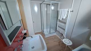 Das Bad beinhaltet Badewanne, separate Dusche, Lavabo, Handtuchwärmer, Fön und Frottéewäsche. Das WC ist separat.