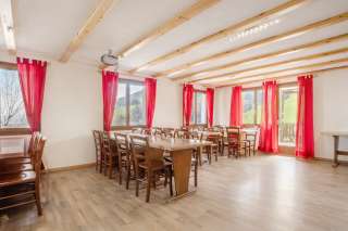 Heimeliger Ess- und Aufenthaltsraum mit Kamin. Küche mit Gastroherd, grossem Kühlschrank und Tiefkühltruhe. Die Betten sind bei Ihrer Ankunft immer frisch bezogen. Der holzgetäfelte Spielraum mit Tischtennis und Fussballkasten kann auch als Discoraum benützt werden.