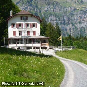 Eingebettet in einer herrlichen Berglandschaft direkt am Fusse des Glärnisch mit Blick auf Wiggis und Schilt bietet das geräumige Haus ideale Bedingungen für vielseitige Nutzung. Das Haus eignet sich bestens zur Durchführung von Klassenlagern, Schulverlegungen, Klassentreffen, Seminaren, Ausbildungswochen, Vereinsanlässen, Ferienlagern, Familienfeiern und Probeweekends.