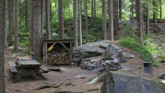 Am Fusse des Wisliwaldes befindet sich eine einladende Feuerstelle direkt am Raminer Bach.