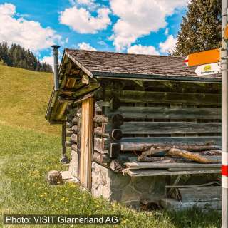 Am Spielplatz am Dorfrand von Elm startend, erreicht man diese Feuerstelle über den Elmer Citro Quellenweg. Der Weg führt durch den Wald vorbei an Bächen in leichter Steigung zum Höchsten-Punkt dem Quellenhüttli.