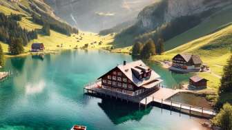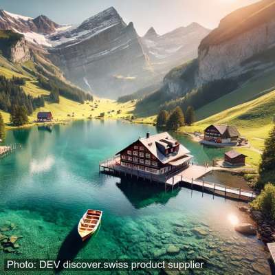 Der Fiktiversee ist ein malerischer See in der Schweiz bekannt für seine kristallklaren Gewässer und die beeindruckende umliegende Berglandschaft.