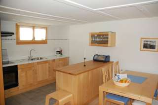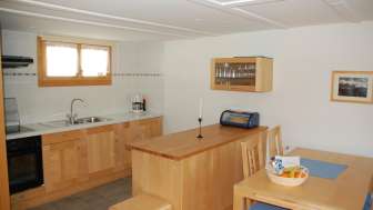Die Einbauküche ist nebst den üblichen Utensilien mit Backofen, Glaskeramikherd, Nespresso-Maschine, Filterkaffeemaschine, Raclette-Set, Fondue-Set sowie Wasserkocher ausgestattet.