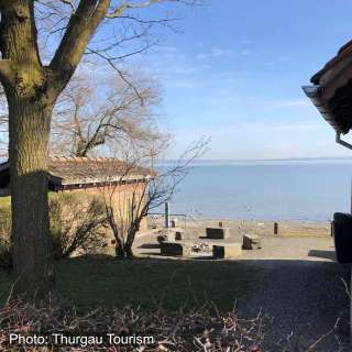 An der idyllisch gelegenen Feuerstelle lässt sich der Bodensee gut mit Kanu und SUP-Board verlassen und einsteigen. Dieser Platz lädt zum Bräteln und Verweilen mit Freunden und Familien ein.