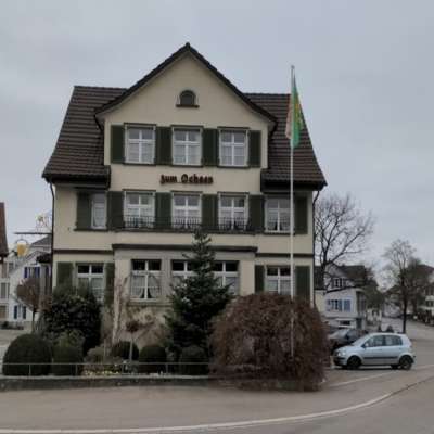 Die heimelige Gaststube mit kleinen Erkern im Gasthaus zum Ochsen in Amriswil bietet Platz für etwa 50 Personen. An schönen Sommertagen lädt die Terrasse zum Verweilen ein.