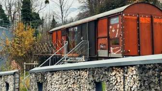 Gleis 6 am Walensee bietet ein einzigartiges Erlebnis in einem umgebauten SBB Cargo-Bahnwagen. Bis zu acht Personen können hier eine besondere Übernachtung in Murg geniessen, mit Blick auf den Walensee.