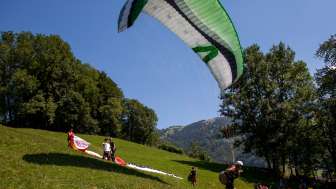 Nach rund 3 Stunden geht auch den sportlichsten Typen langsam die Puste aus und wir falten die Gleitschirme zusammen.