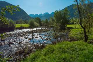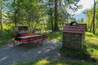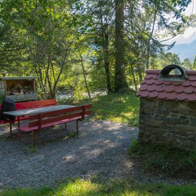 Einfacher Grillplatz auf einem Inseli in der Thur, mit Holz und Gigampfi.